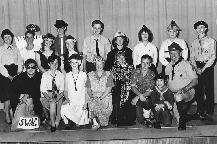 September 1987 and the cast of Ashburton Scouts Gang Show line up for the camera (MDA)