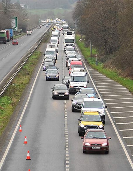 A survey revealed that three of the six collisions on the southbound approach to Penn Inn had either involved late or sudden manoeuvres from the nearside lane to the offside - or rear-end shunts by sudden braking by drivers failing to react in time to traffic queues.