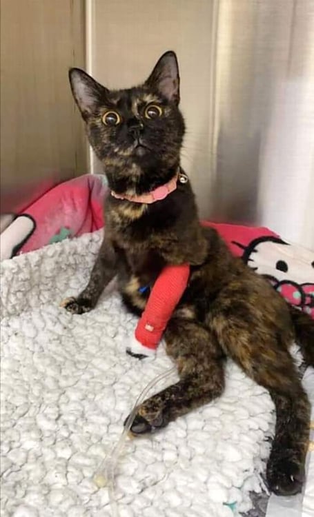 It’s still touch-and-go for Missy, a Tortoiseshell moggy, who the vets say may not make it. She is receiving physio from ‘the amazing’ team at Milestone vets, Kingsteignton, but may never walk again after being shot on July 12.