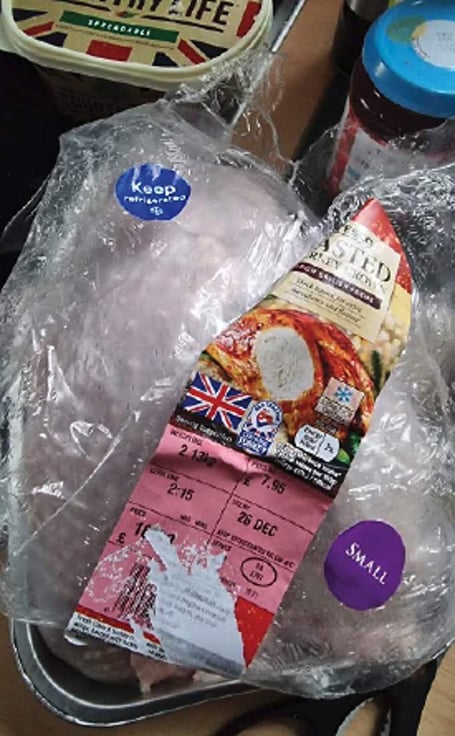 ‘I removed our turkey crown that I brought yesterday from its wrapper to a horrible pungent smell, the turkey is off so thanks a bunch!’