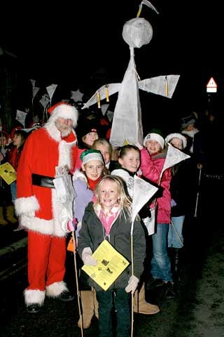 Plenty of townsfolk joined in the fun as children from Chudleigh Primary School paraded with home-made decorations – and Father Christmas – from the church end of town up to the town hall.