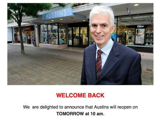 ‘All of us at Austins are hugely grateful for your continued support through these unprecedented times, and we look forward to welcoming you back.’