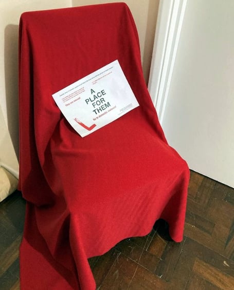 ‘These chairs, covered in red cloth, symbolise the empty chairs left by women who have lost their lives.’