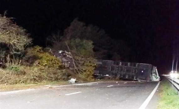 A police spokesman said: ‘There is likely to be traffic disruption until the lorry is recovered from the scene.’
