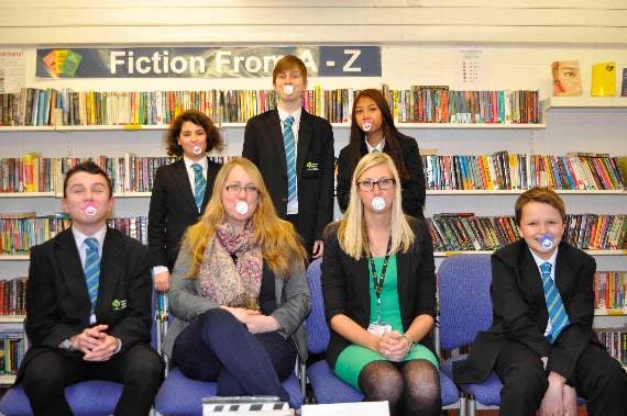A group of five students and two members of staff spent the day with a dummy in their mouths in a bid to drum up cash for the Torbay Special Care Baby Unit.