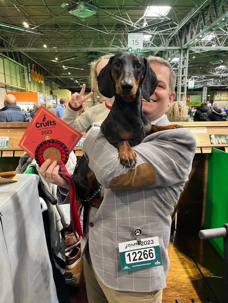 Monty, the smooth-haired black and tan standard dachshund, was first in his class at the prestigious annual event held by The Kennel Club.