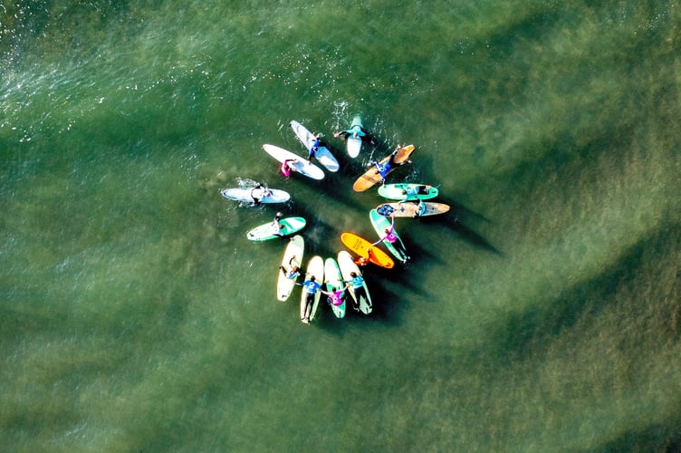 SURFERS from across South Devon paddled out together in Bigbury Bay last week to mark World Mental Health Day.