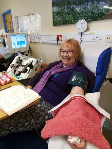 Joan, who is deputy Mayor of Teignmouth, visits the blood and transplant unit at Derriford Hospital in Plymouth on average every four weeks where she is hooked up to a machine which collects her platelets.
