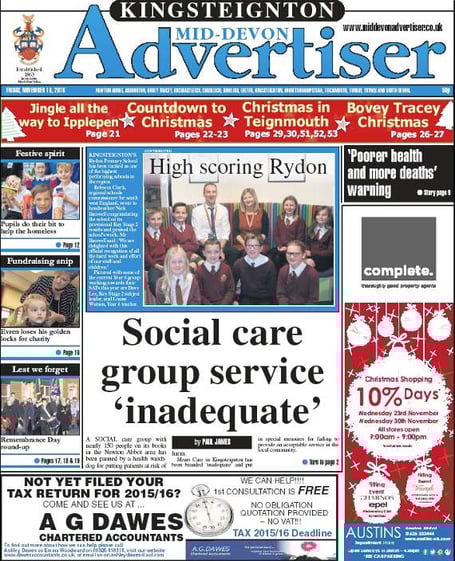 KINGSTEIGNTON’S Rydon Primary School has been ranked as one of the highest performing schools in the region; Social care group service ’inadequate’; Pupils do their bit to help the homeless; Evren loses his golden locks for charity; Remembrance Day round-up.