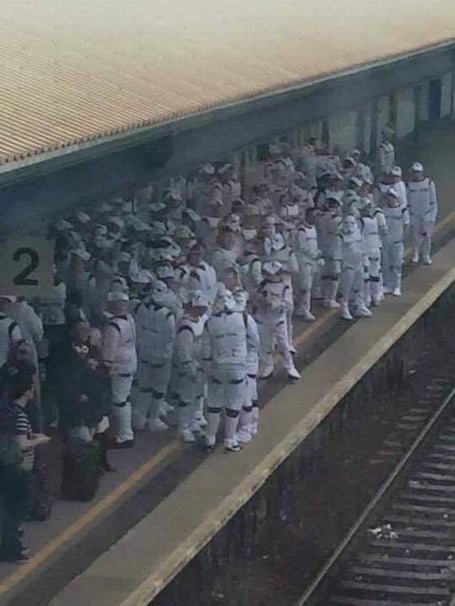 Platform two at the station was flooded with Stormtroopers from the 1970s classic sc-fi film Star Wars.