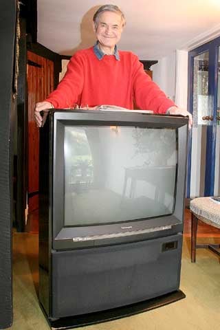 'The 32 ins TV stands at 3ft 6ins high, is 2ft wide and 2ft deep. It still works and takes two men to lift it.'