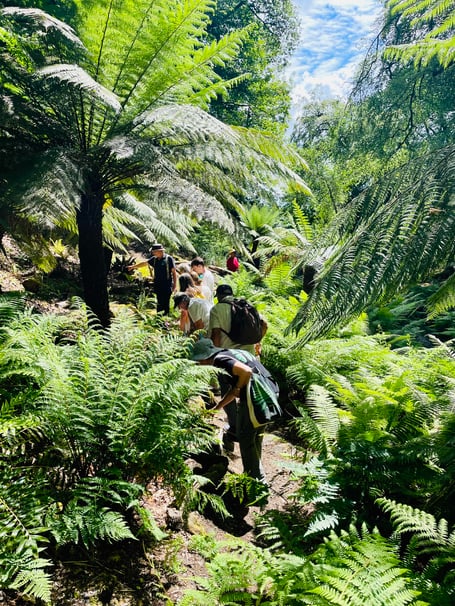 ‘Julian Reed, who helped us curate our National Collections of ferns, held talks in the fern garden, which is found in a hanging valley below the base of Lady Exmouth Waterfalls.