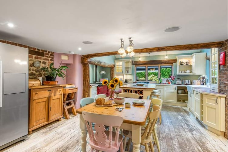 The mansion is set out across two floors, with the ground floor made up of a country kitchen - once featured on ITV’s ‘Lorraine’ - and dining area, with exposed beams and brick and a kitchen island.