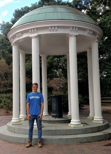 Lewis is pictured at the famous Old Well at the Chapel Hill campus. The well is the emblem of the university.