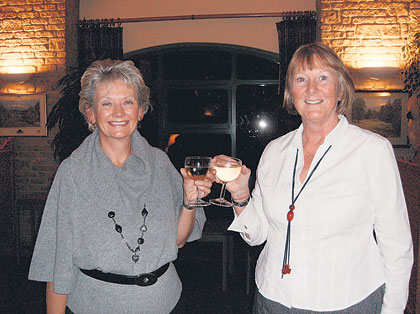 Dainton Park's outgoing captain Laurel Clifford and the new ladies' captain Sue Elson are pictured enjoying a glass of wine after the annual meeting, when the captaincy was handed over for 2009.