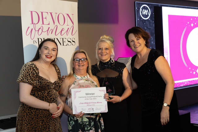 Best Supporting Act, which was open to all genders, sponsored by Q-Ball Creative, was won by the inspirational Christopher Wills for his work supporting the owners of the Newton Abbot charity, Wellbeing in Action, run by Lindie Wadlan and Emma Warren. Lindie and Emma also won the award for Charity / Community Group or Project of the Year, sponsored by Falcon Digital.