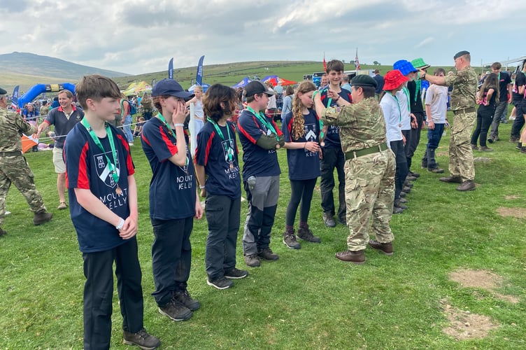 One of the Mount Kelly teams are presented with their finishers' medals (Guy Boswell/Tindle)