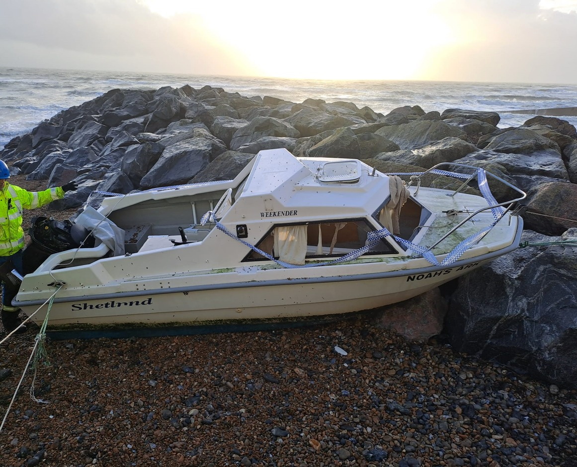 ‘The boat was secured to rock and the promenade, awaiting recovery.