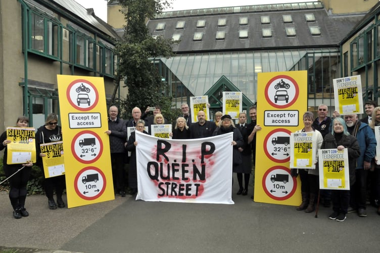 WITH placard in hand residents and traders gathered afront Forde House in protest against changes to Newton Abbot’s Queen Street, as Teignbridge District Council (TDC) heard a motion to ‘park the project plan for the street’ from the South Devon Alliance (SDA).
