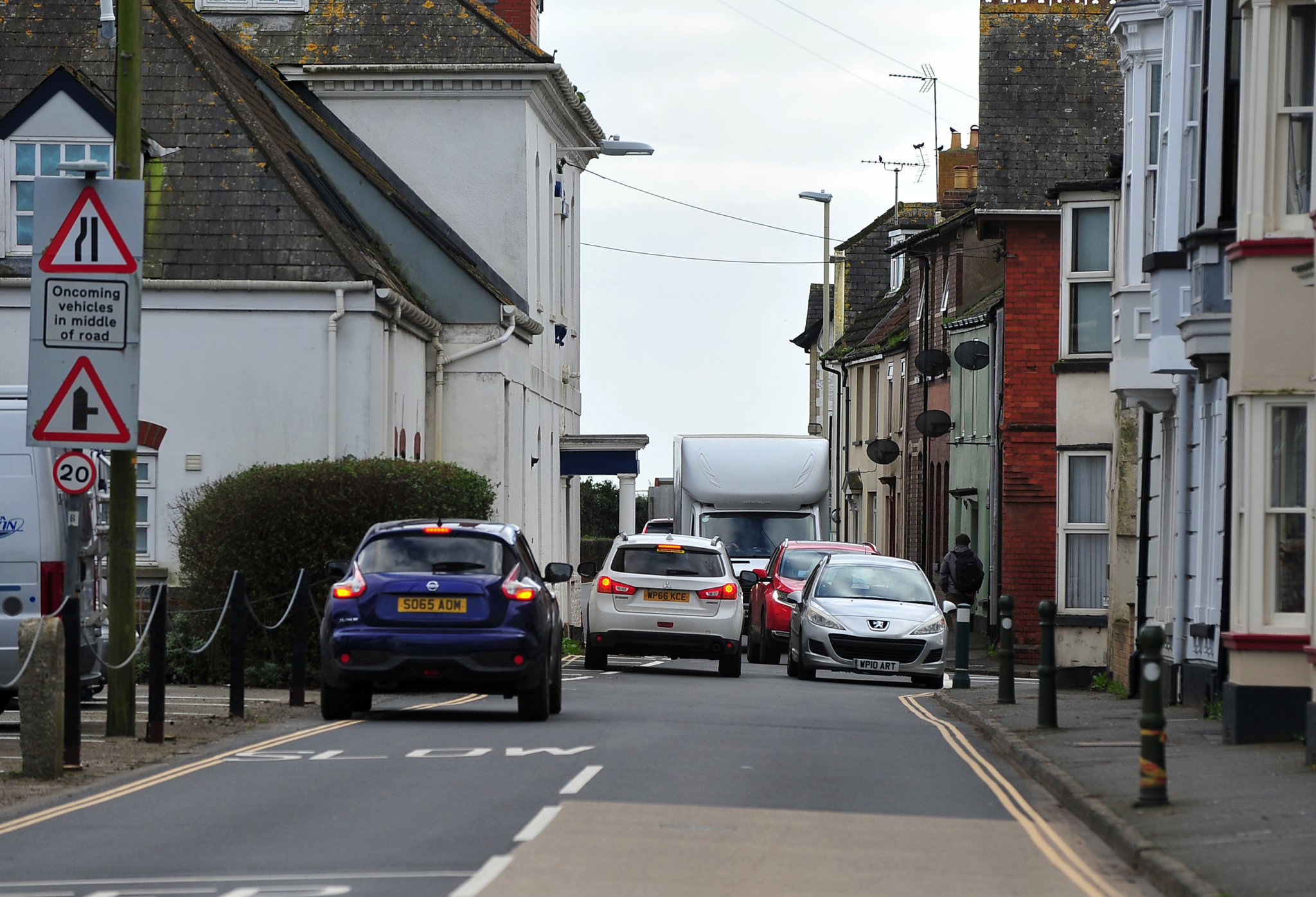 The width of this section of the road makes it difficult for vehicles, particularly HGVs, to pass easily and often leads to queuing traffic at peak times.