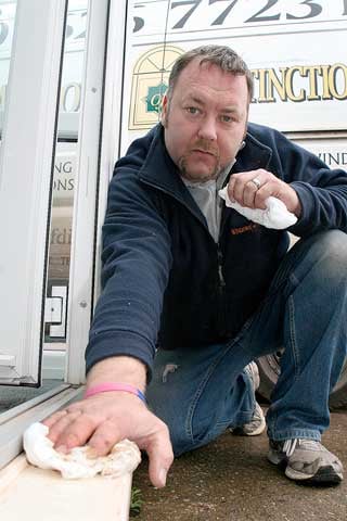 Nicky Ford, a director of Windows of Distinction based on the Broadmeadow estate, is furious because their showroom is regularly coated with 'filth' from passing trucks en-route to the building site.