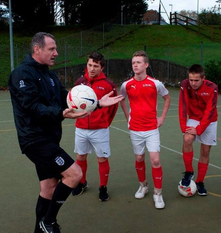Former professional footballer Alex Watson, who made more than 400 appearances in the Football League playing for Liverpool, Derby County, AFC Bournemouth, Gillingham, Torquay United and Exeter City, visited Football Academy students at Newton Abbot College to deliver an FA Level Coaching Award session as part of the Arsenal Soccer School programme.